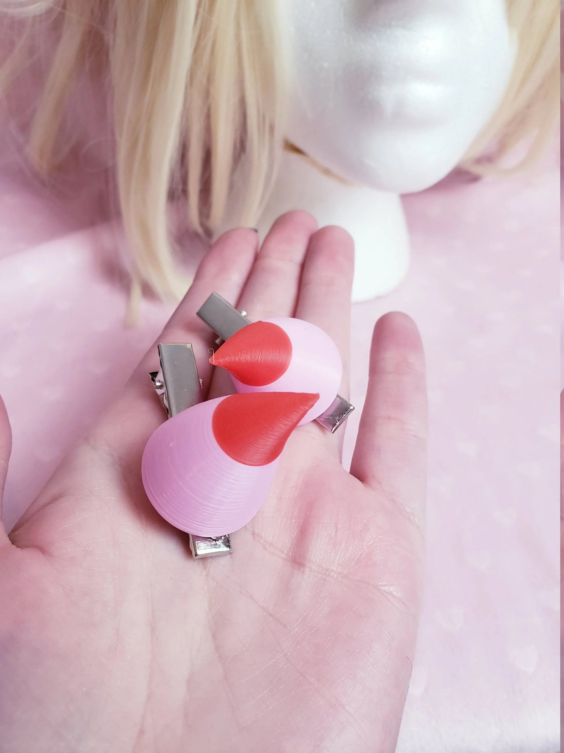These babies come attached securely to metal alligator clips. This style of clip has little teeth that safely grip into your real hair (or a wig!) for a secure hold. The metal ends of the clip are easily hidden with some clever hair-styling, and can be placed anywhere on the head for your desired look. I recommend wearing them as pictured in the last image, with the back of the clip near the back of your head so they are more easily hidden.